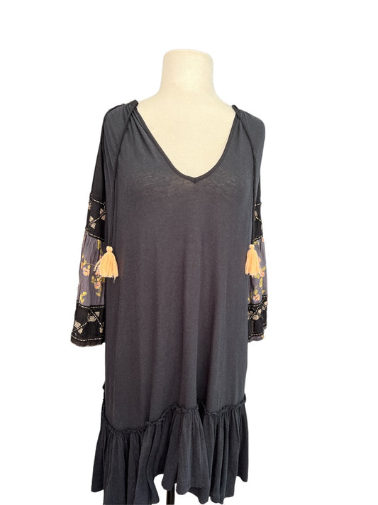 Small Free People Black Boho Flare Sleeve Tunic Blouse