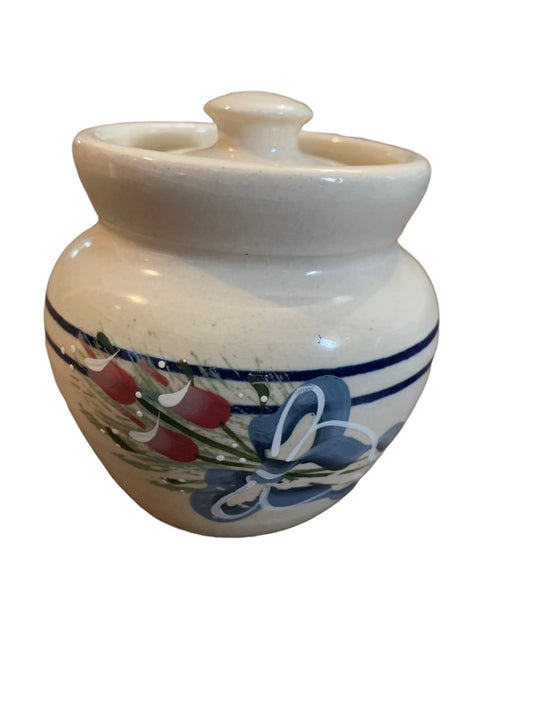 Marshall Yesteryears Hand Turned Lidded Sugar Jar Blue Line Floral Texas