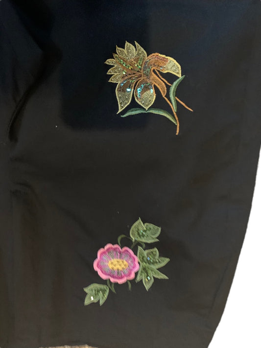 14P Larry Levine Petite Sport Stretch Women's Crop Black Dress Paints Embroidery