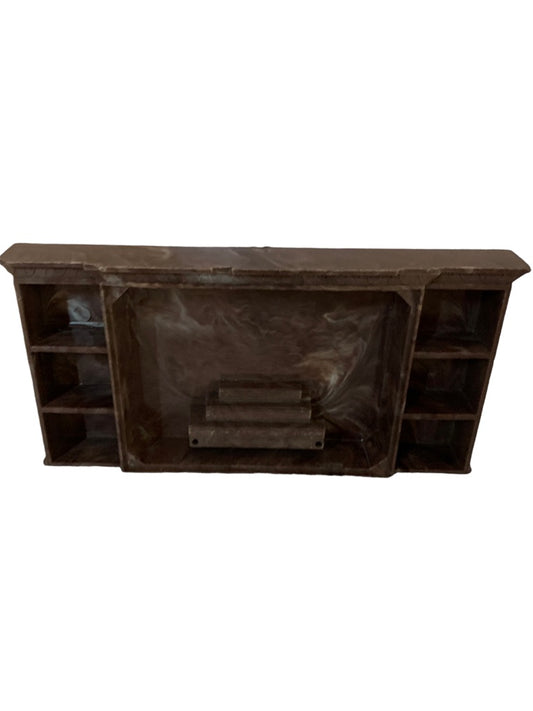 Vintage Miniature Dollhouse Plastic Mantel Fireplace Brown Plasco USA