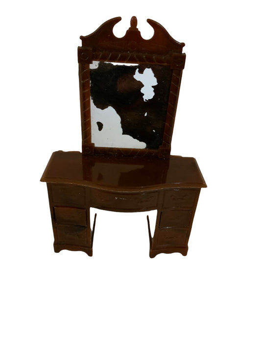Vintage A Renewal B82 Dollhouse Minature Vanity Brown Drawers USA