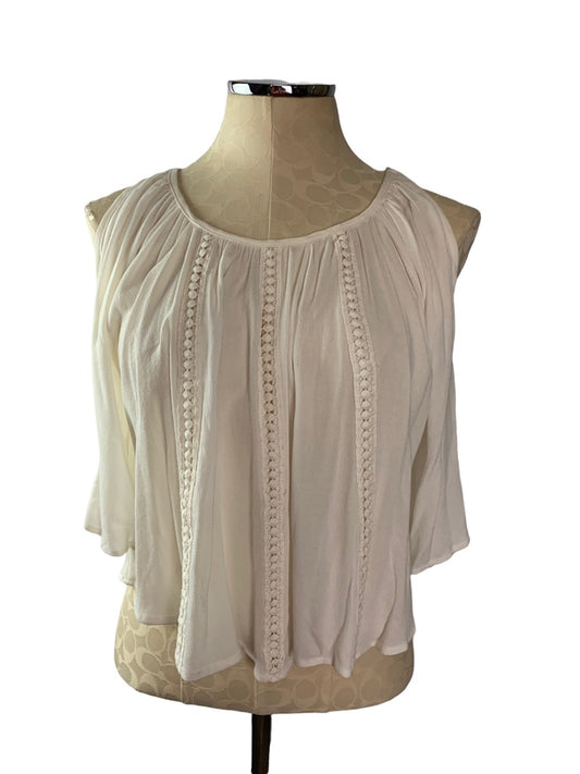 Medium Sun & Shadow Women's Cold Shoulder Crop Blouse Off White