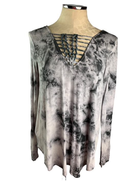 Medium American Eagle Soft & Sexy Long Sleeve Tshirt Women's Gray Laced Neckline