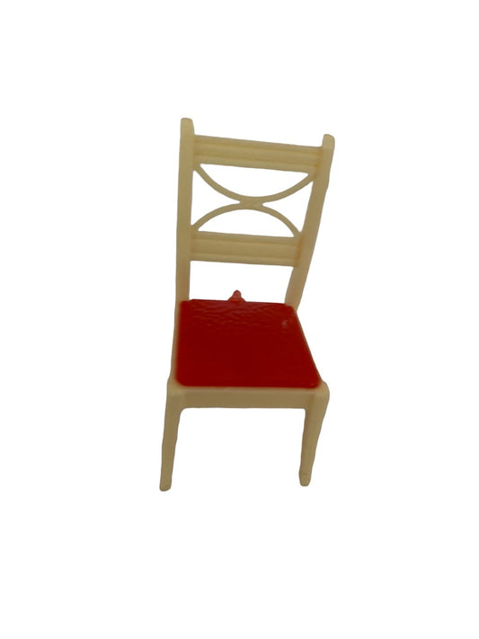 Vintage A Renewal K63 Miniature Dollhouse Plastic Chair Ivory and Red