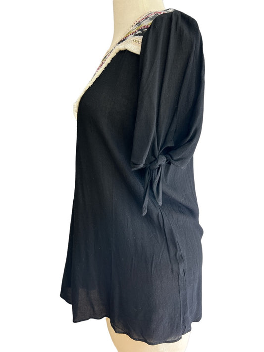 Small Jodifl Black Boho Trim Short Sleeve Blouse