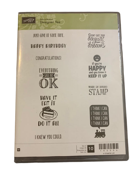Stampin' Up! Designer Tee Wood Mount Stamp Birthday Cake Motivation 143356