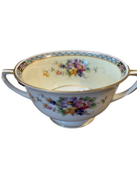 H & C Heinrich Vintage Bouillon Cup Senta Pattern Broth Double Handle Floral