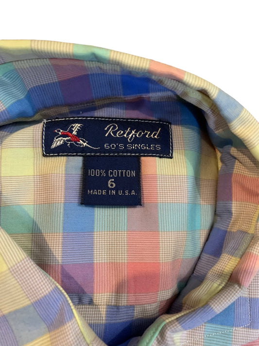 6 Retford Boys Plaid Pastel Button Up Shirt New Made in USA 100% Cotton