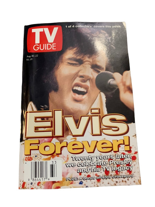 TV Guide August 16-22 1997 Elvis Forever 1 of 4 covers singing white suit Vintage Magazine Book 1990s Elvis Crossword Puzzle