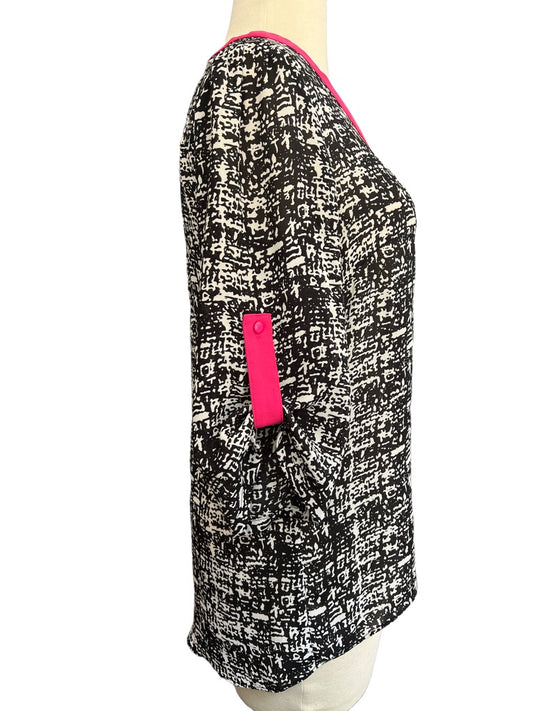 XS Jade Melody Tam V-Neck Tunic Top Roll Tab Sleeve