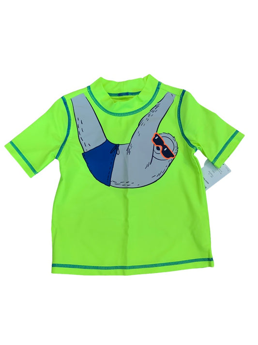 2T Carter's UPF 50 Sloth Neon Green Short Sleeve Rashguard Swim New