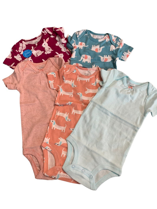 12 Months Carters Set of 5 One Piece Short Sleeve Animal Theme Pink Blue