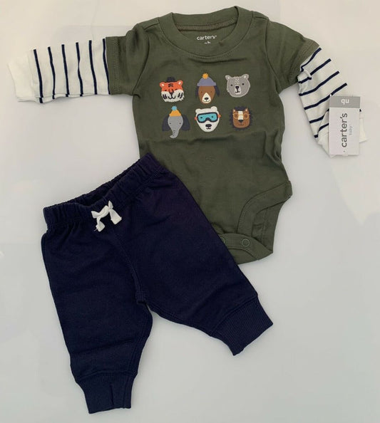 Newborn Carter's 2 Piece Pants and Shirt Animal Outdoor Theme Joggers