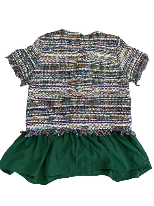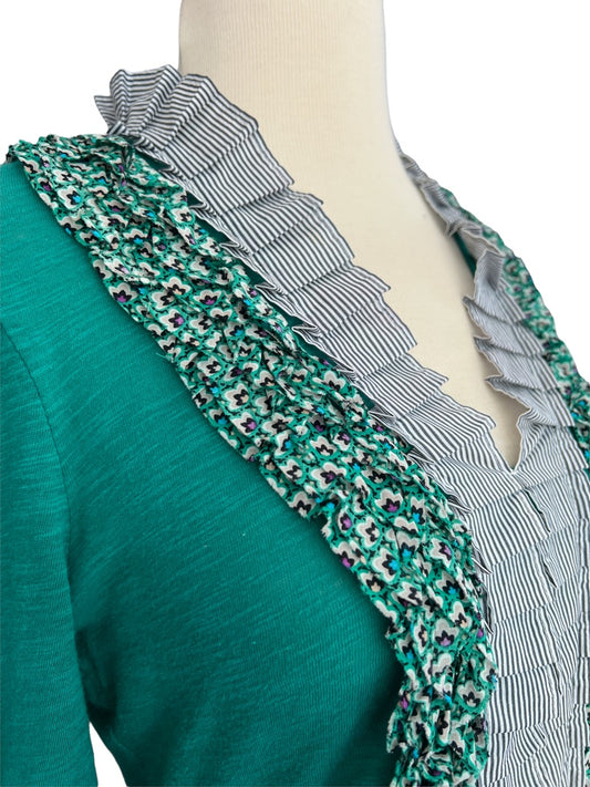 Small Deletta Anthropologie Tuxedo Ruffle Green Blouse Top