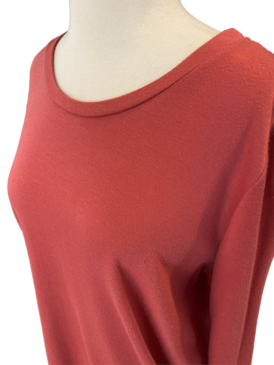 Medium Bobeau Bow Back Rust Long Sleeve Top Satin Accents