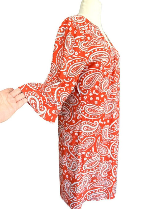 Multicolor Aryeh Medium Aryeh Orange Paisley Stretch Bell Flare Sleeve Dress, Medium