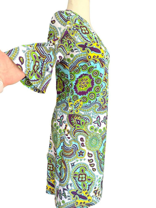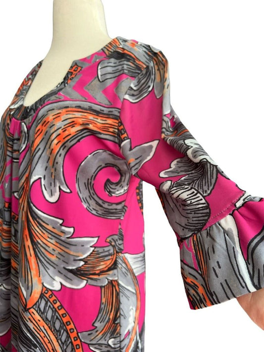 Small Jude Connally Paisley Stretch Bell Flare Sleeve Dress