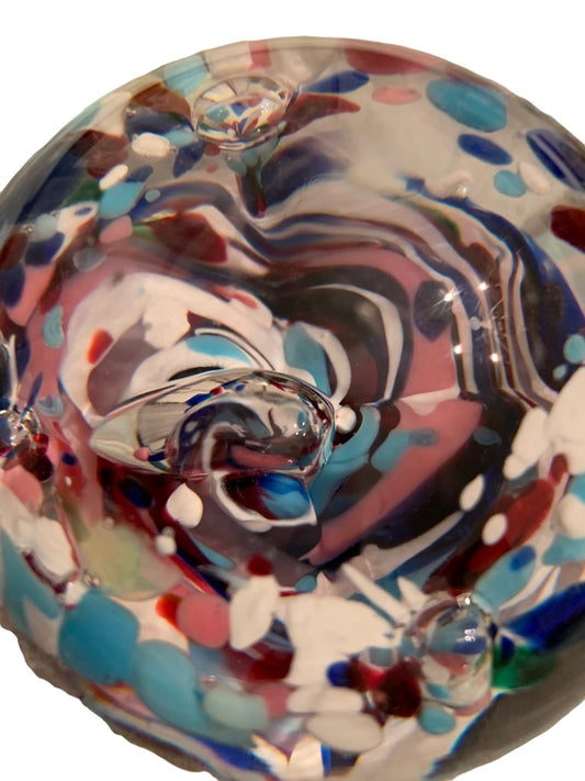 Heavy Glass Globe Paperweight Abstract Design Blue Purple White 3.5"d x 2.8"h