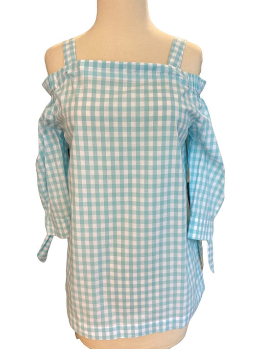 XS Tyler Boe Turquoise White Gingham Cotton Blouse NWT