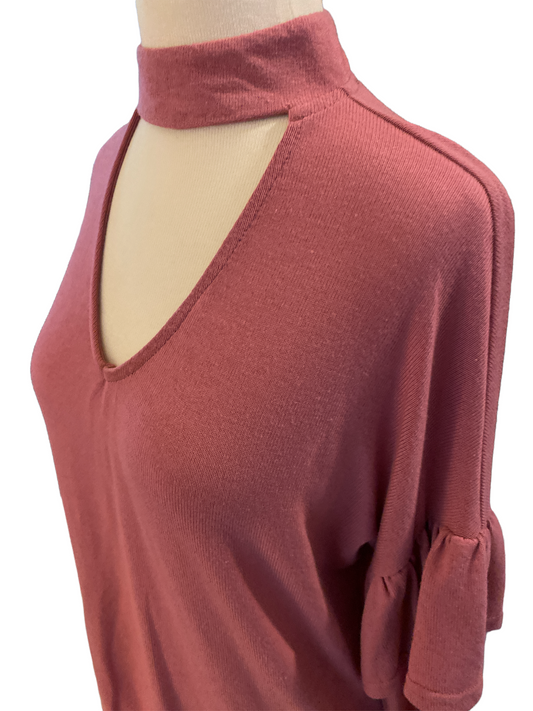 Small She + Sky Hi Lo Rose Ruffle Sleeve Sweater