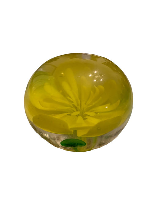 Round Globe Paperweight Yellow Flower 2.2"d x 1.8"h