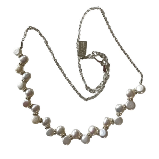 Baroni New Sterling Silver and Pearl 17" Necklace