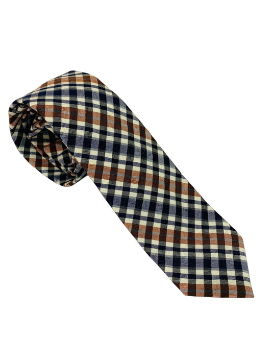 Public Opinion Mens Tie Necktie Plaid Wool Silk Blend 2.5" Width 58" Length