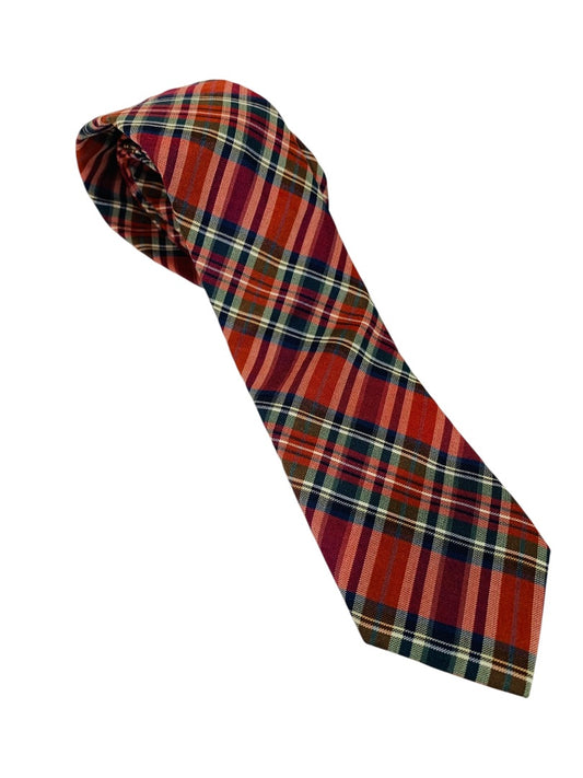 Public Opinion Mens Tie Necktie Red Plaid Wool Silk Blend 2.5" Width 58" Length