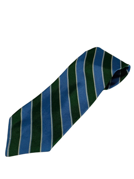Brooks Brother Mens Woven Silk Necktie Tie Green Blue Stripe 2 3.75" Width 60" Length