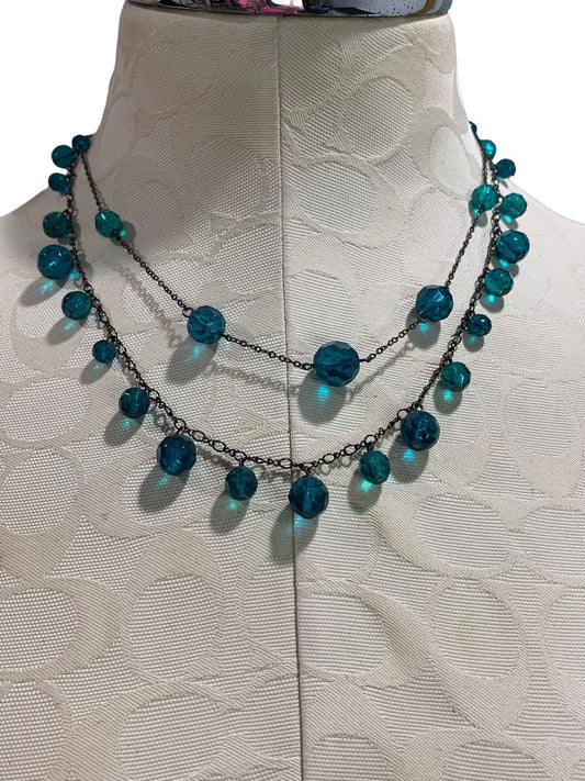 Express Pewter Color Teal Beaded Double Strand Necklace 18 Inch