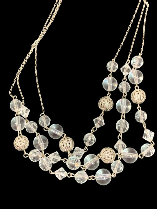 Express Multistrand Silvertone Necklace Clear Beads 16 Inch