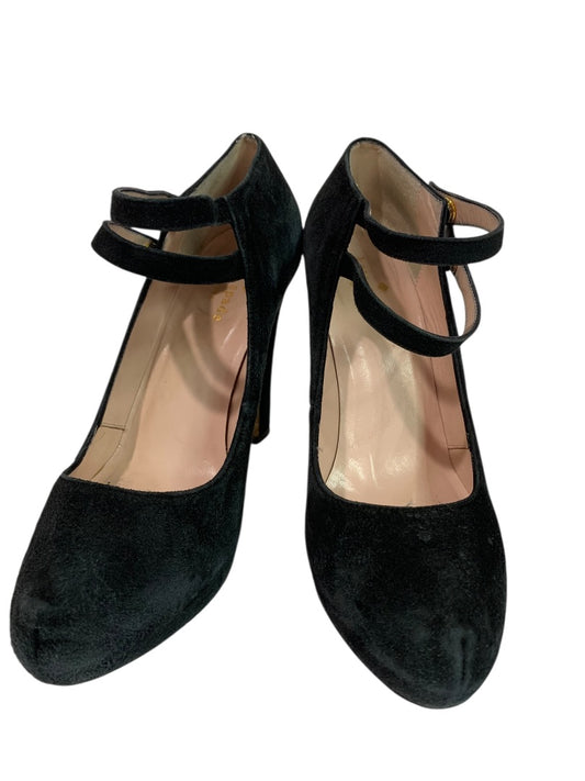 Size 7 Kate Spade Nara Double Strap 4.5" Heel Shoes Black Suede
