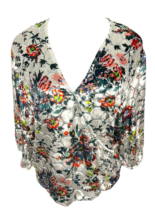 Small Maeve Anthropologie Sheer Umi Wrap Floral Velvet Shirt Silk Blend