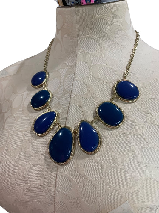 New York & Co Goldtone Blue Statement Necklace Lays Flat 21 Inch
