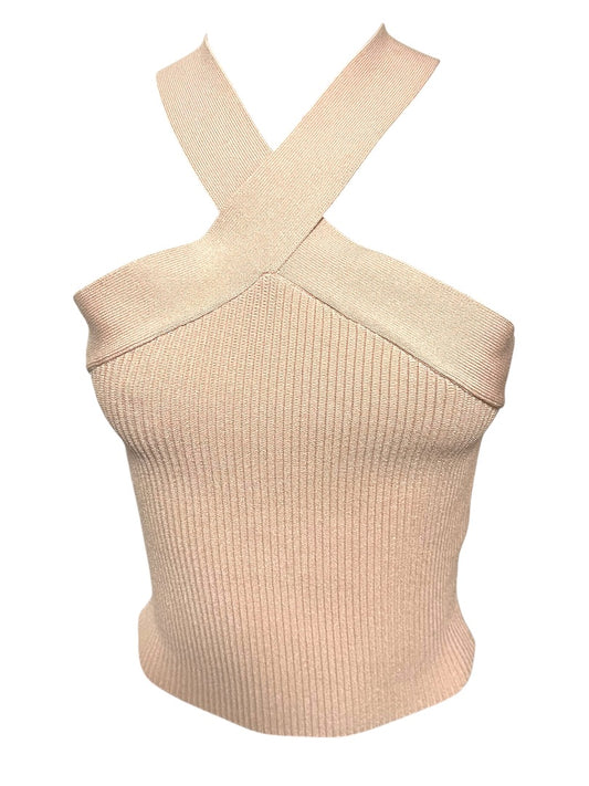 Medium Allie Rose Elegant Criss Cross Cropped Halter Top Pink