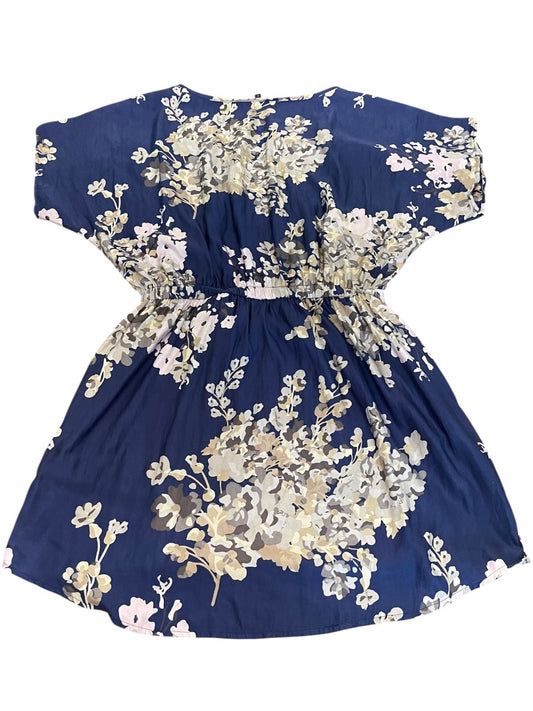 Large Express Floral Scoop Neck Elastic Waist Mini Dress Blue Pockets
