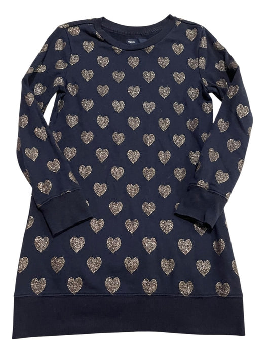 Medium (8) Gap Kids Sparkle Heart Sweatshirt Dress Navy Blue