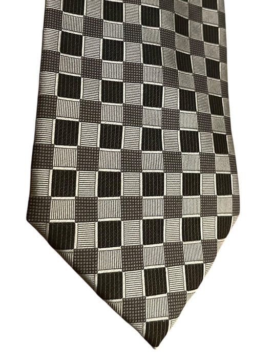 Valerio Garati Pure Silk Hand Made Square Pattern Tie Mens Necktie Black Gray