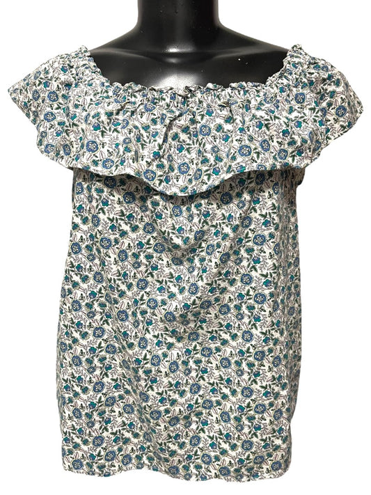 XS Loft Womens Ruffle Floral Linen Blend Womens Shirt Off Shoulder