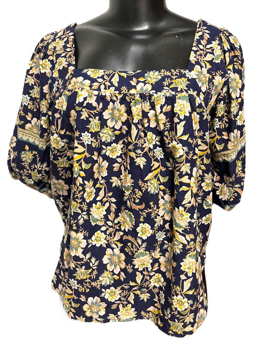 XS Roan + Ryan Square Neck Floral Short Sleeve Womens Shirt Boho