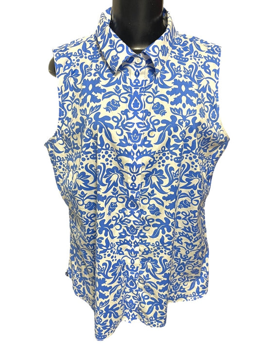 Size 16 Talbots Button Up Wrinkle Resistant Sleeveless Floral Shirt Blue