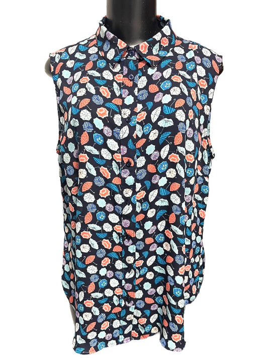 Large Talbots Button Up Collared Sleeveless Umbrella Patterned Shirt