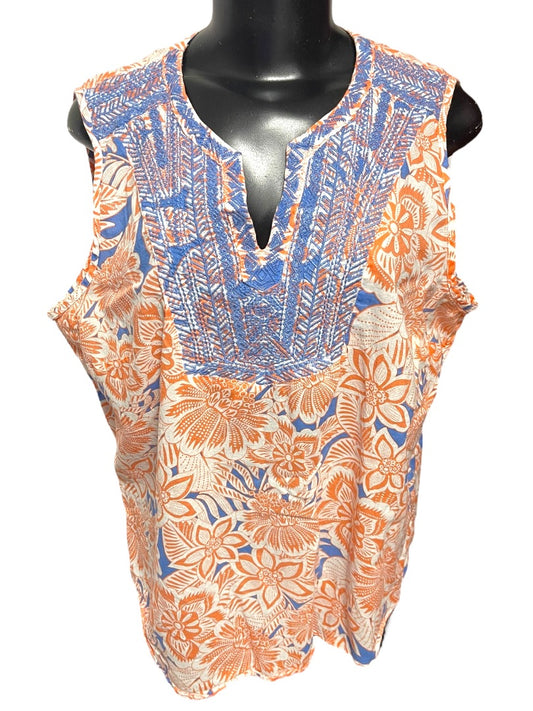 XL Talbots Floral Embroidered Cotton Sleeveless Shirt Boho Pullover