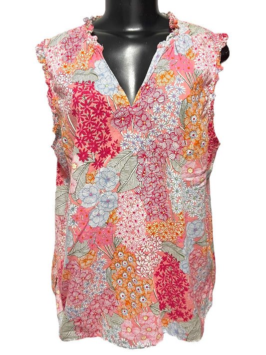 XL Talbots Ruffled Sleeveless Floral Cotton Shirt Pullover