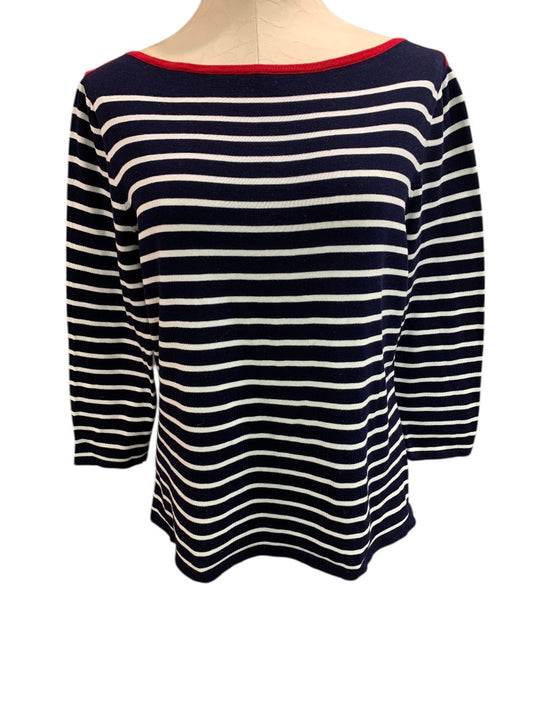 XL Lauren Ralph Lauren Womens Striped Navy Blue Boatneck Sweater