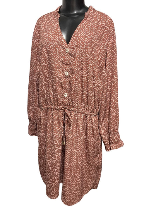 3X Indulge Floral Long Sleeve Tie Waist Dress Brown Retro