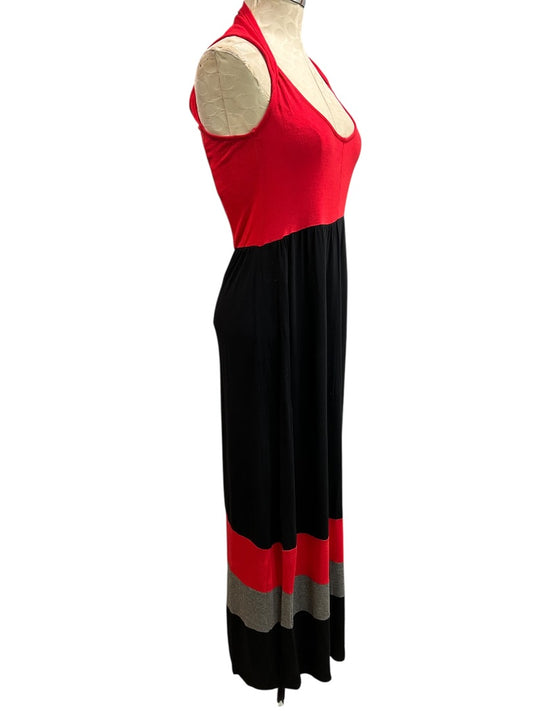 Medium Pink Rose Jersey Knit Maxi Dress Color Block Cut Out Back