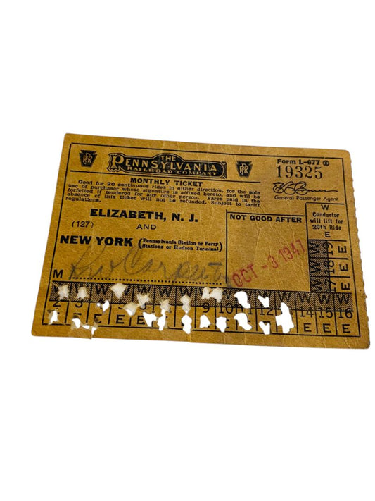 1947 The Pennsylvania Railroad Company Monthly Ticket Elizabeth NJ New York