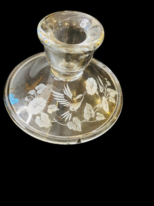 Vintage Avon Crystal Hummingbird Flower Taper Candlestick 2.5"h