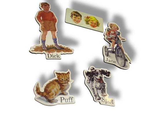 Set of 5 Dick and Jane Retro Magnets Scott Foresman Die-Cut Spot Puff